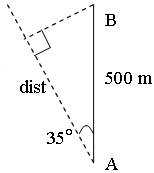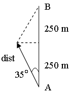 A point B is 500 m due North of a point A. Rahmat walks from A on a bearing of 325 deg.