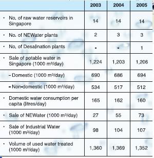 "Singapore buys only half of its water, or about 150 million gallons per day (mgd) from Malaysia. The other 150 mgd come from its own reservoirs." (Singapore Ministry of Information, Communications and the Arts, 2003 ;Water Talks? If Only It Could;, page 6.)