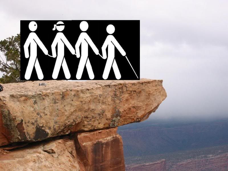 Sighted man lead by blind... might as well be blind - Blind lead by Blind.......