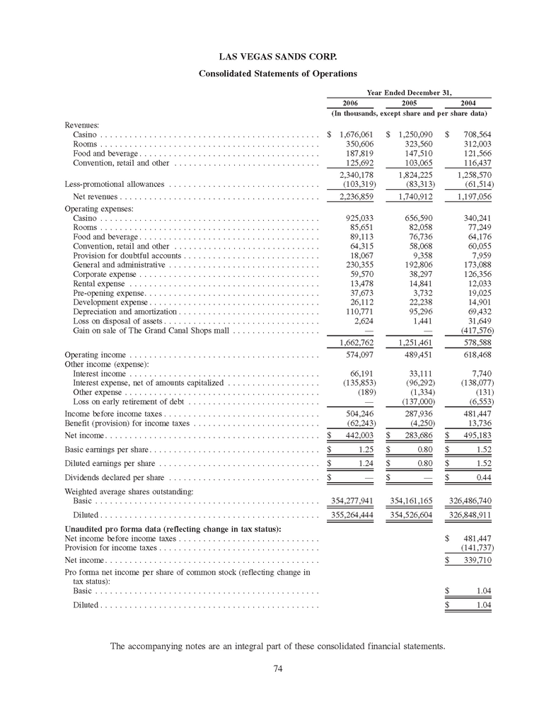 Your article talks about casino contribution of 30 to 35 percent (which the author cannot even confirm, so is it 70/30 or 65/35). You said that this article relates to the Venetian business model and the consolidated financial statements is different, but the next sentence it talks about rooms revenue of $320 million, which coincides with the 2005 consolidated financial statements $323 million. Don't tell me Venetian Resort is the only casino with rooms.Originally posted by Gazelle:"Our business plan creates the most diversified sources of income of any of the major casino developments," Weidner says. "A large portion of our revenues relate to the conference and exhibition business. That in turn, drives rooms and catering revenues. As a result, our casino department contributes about 30 to 35 percent of the total. That's not because the casino doesn't do extraordinarily well – it does – but because we'll generate $320 million in rooms revenue alone this year"