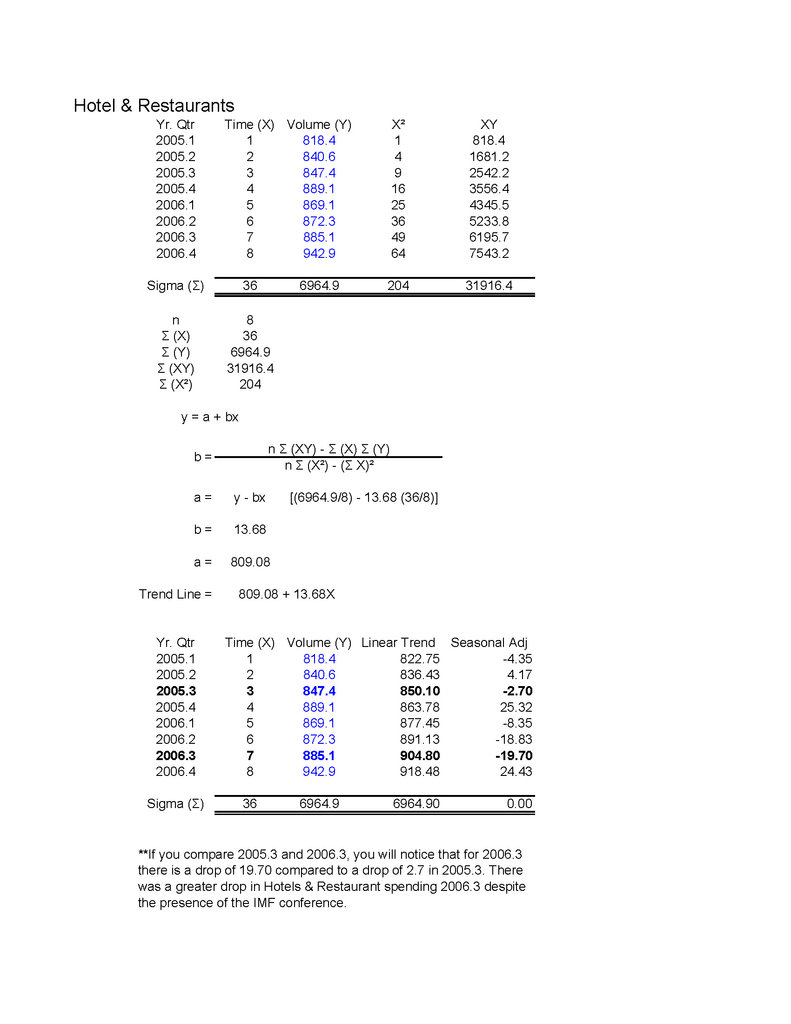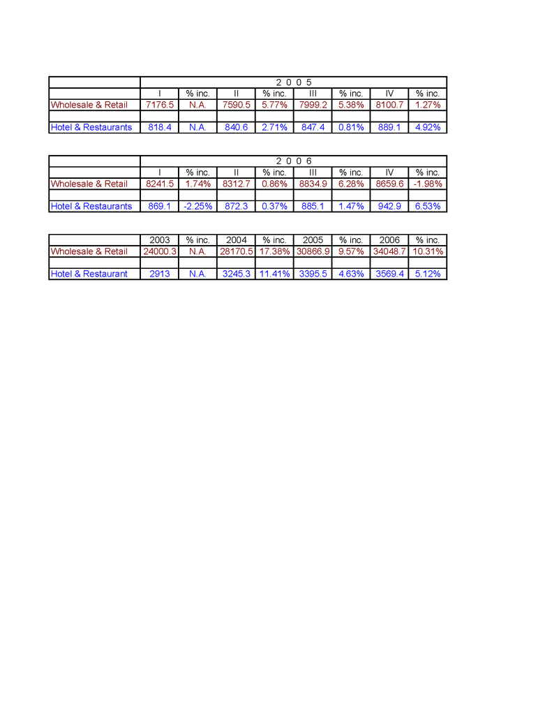 Would you mind explaning why during the IMF meeting in Sep06, which is the last month of Q3 2006, there is a surge in both retails and hotel & restaurant industry? I thought your survey has indicated that during the IMF meeting there was a slump in retail business?
