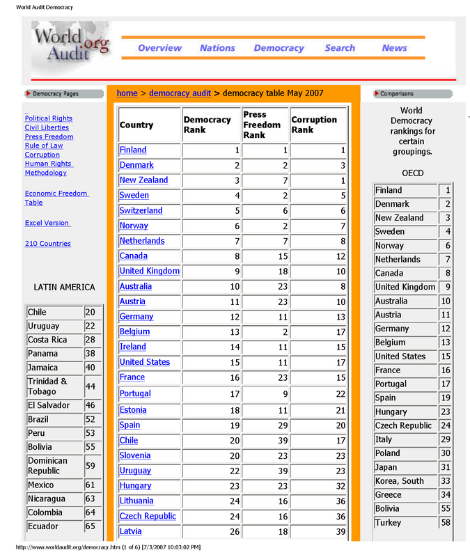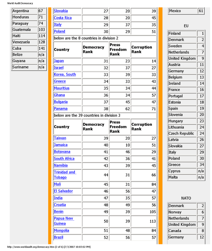...to obtain a World Democracy Ranking this is added to the Press Freedom score