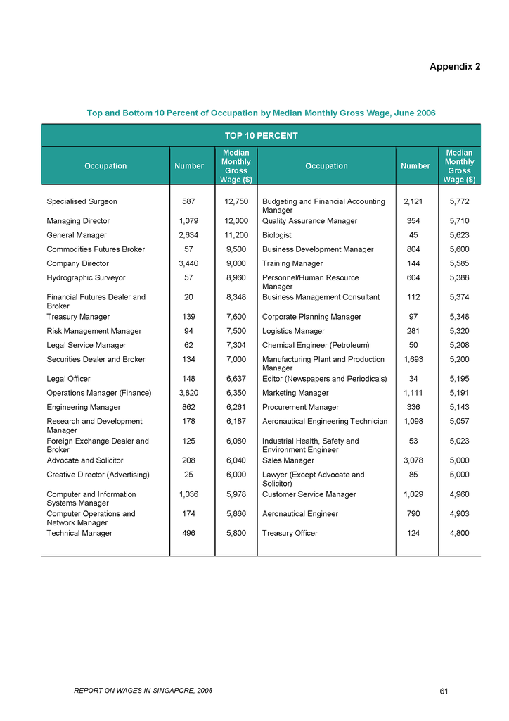 This is a survey conducted by our renowned MOM (Ministry of Manpower) in 2006 about the wages of certain occupational groups. This survey though conducted in 2006 is nevertheless relevant because there are no other current surveys.