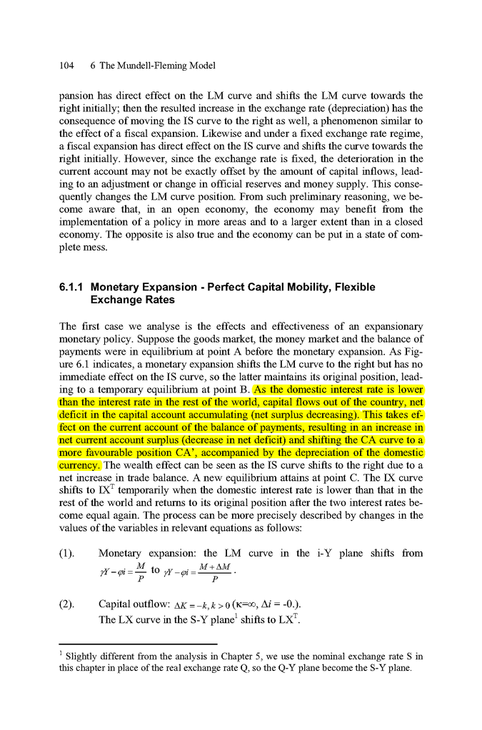 Dornbusch finds that an unanticipated monetary expansion immediately depreciates the exchange rate, creating excess demand for domestic goods.