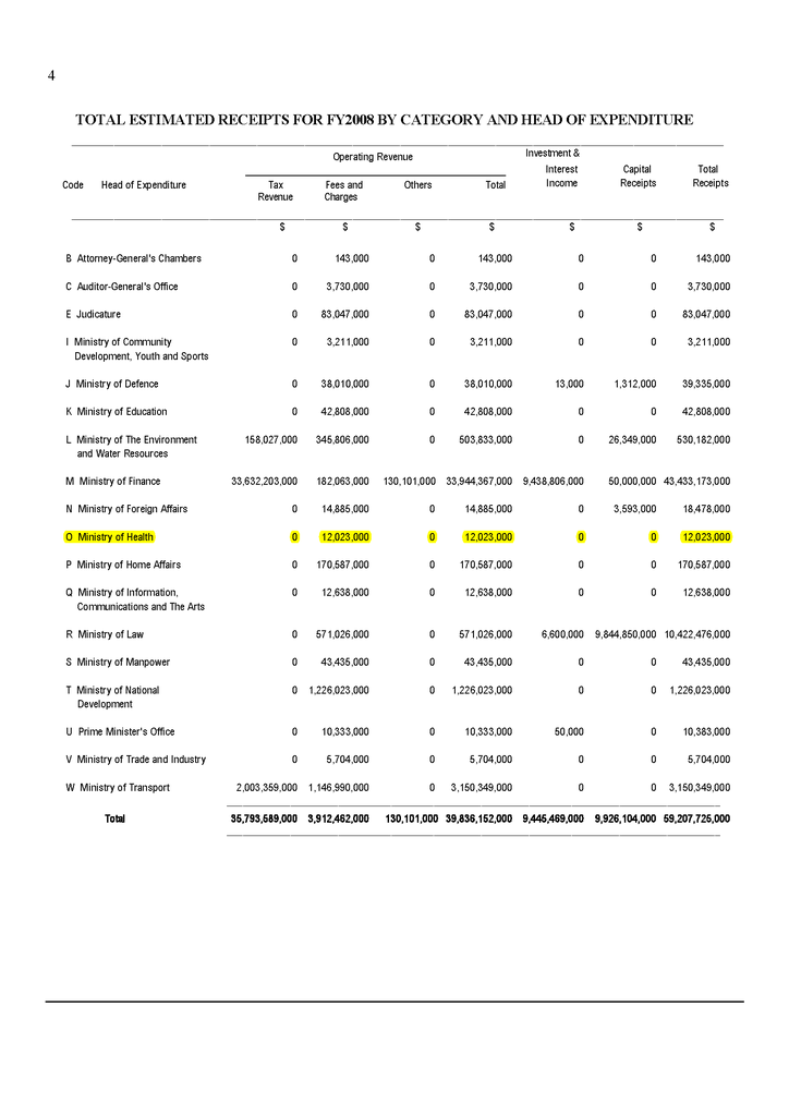 I was just looking through the Singapore Budget 2008, one thing that amazes me is that for most of the expenditure class, they provide expenditure and revenue matching, except for Medical and Health.