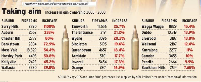 GUNS now outnumber people in some areas of NSW as the latest figures show alarming local spikes in weapon numbers, including in Sydney's crime hotspot suburbs.''