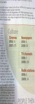 And finally, this graphic - which compares the number of newspapers in 1959 against the number today. The list under 1959 is fairly accurate, notwithstanding that Singapore at that time was still under Emergency Rule and there were dozens of smaller newspapers published by political parties, trade union and universities.