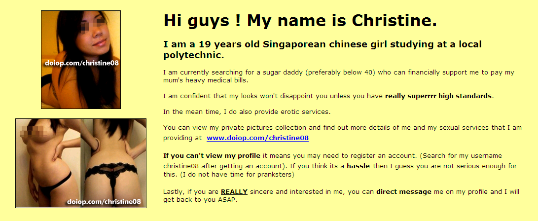 i dun do this lor, but i really pity her, if it is true for her mother illness. Nevertheless, i think she is doing the wrong way.