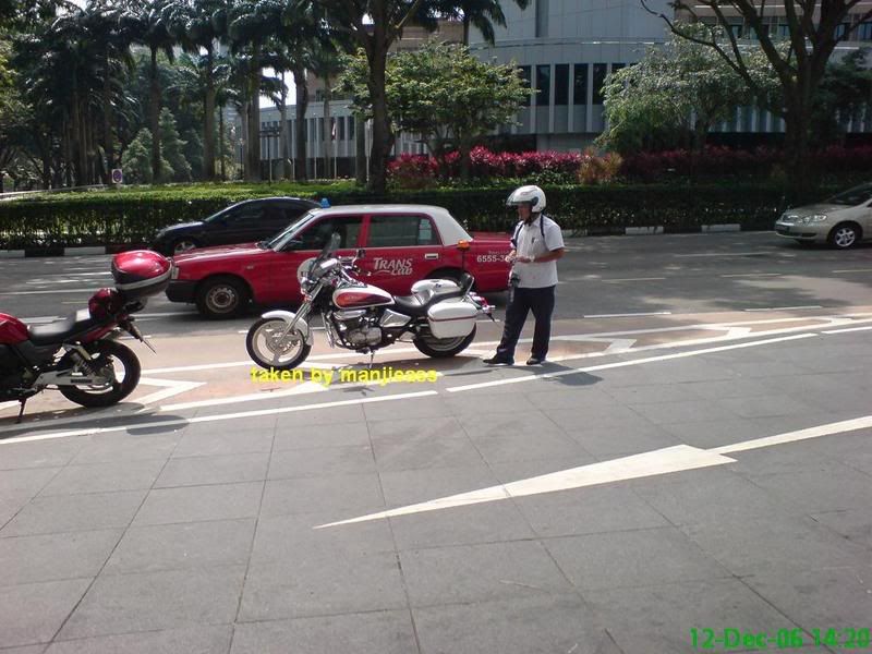 Mobile Traffic Inspector,He's the first one should any harm done to the BC On board,Authorised by TP to summon motorist parked at Bus stop,There's always a pair at Changi Village between 6-8 pm & 7-7.30pm at Upper East Coast.Originally posted by Urroh:never see before..![]()