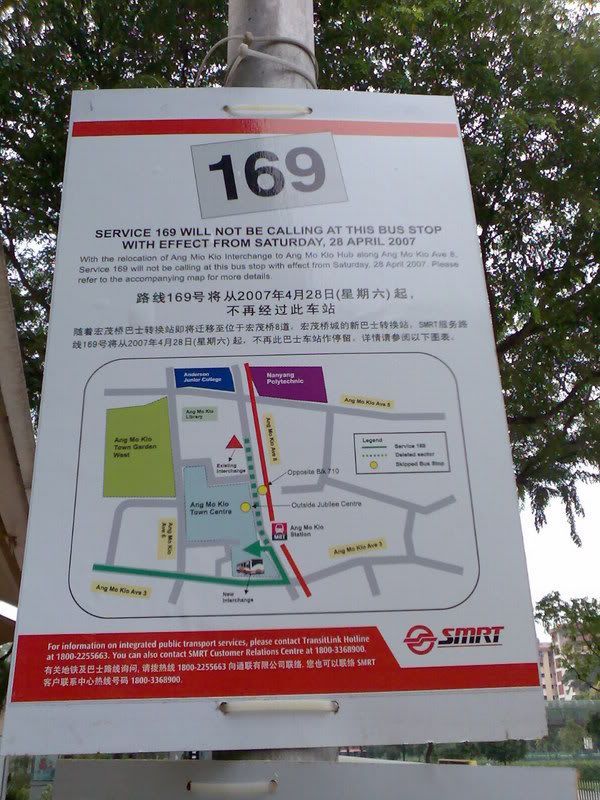 Thanks for the opening date & I had put up those berths for SBST & SMRT Services at New AMK Int on Pg 3 already.Originally posted by Frogleg888:Reply to brotherchen1982,fyi,the new AMk bus interchange will be open on 28 April 07(Sat),and service 169 will call on berth 4,Service 169 wiil not stop at Ave 8.Just saw the notice board at 169 bus stop yesterday.Cheers.![]()