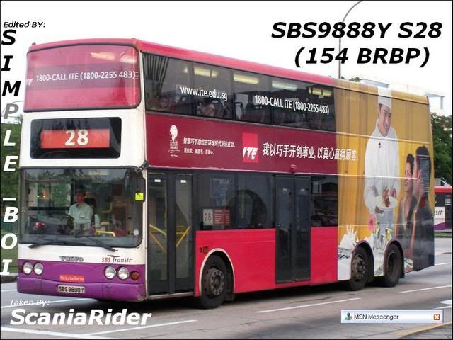 You are so lucky to have so lucky to have so many special buses follow you around; it's as if they all like youOriginally posted by ZYX2005:SBS 9888Y (first low-floor SuperBus in singapore) - route 154, try 5pm boon lay if not 530pm boon lay int