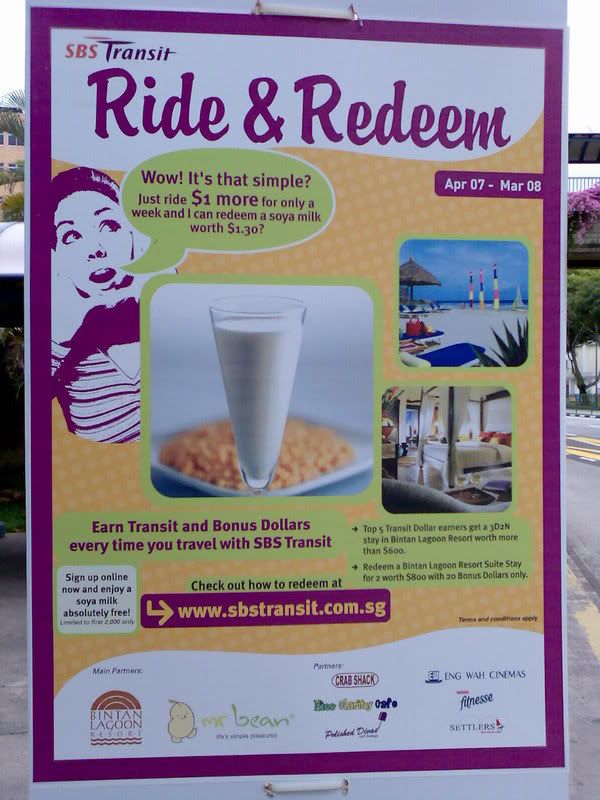At least better than nothing. You can be assured that you will get something in return in the long run from the redemption for travelling with them. I am staying in a SMRT controlled territory without any SBS Transit buses. Sad to say that I will not be benefited at all to go to/from school or anywhere else from/to my home. This can be said that I am being forced to take SMRT buses and train. It is just the fact and not to say that I am aiming for the free gift. The same case applies for the use of the Season Pass.Originally posted by ZYX2005:I can be frank here: