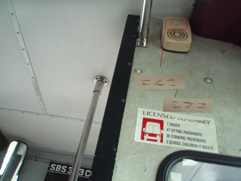On the left headlight, they painted the black part away but the purple paint seem to give way. The SBST logo, they can shoot us back, many buses can be like that, like I suspect SBS397G previously. They could shoot us back on the curvy metal beside the entrance and the front wheel, "Oh, it's damaged". But why so many "coincidence" that happened? These are enough to confirm that the current SBS303C is the former SBS372C. Furthermore, there's a "372" marking on the speaker onboard.