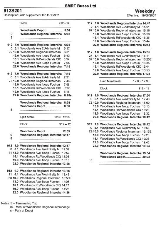 It looks like any other SMRT timesheet you see. Just that the intermediary trip points are more due to its long route.