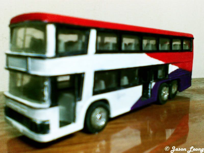 This bus model was actually from very long ago. I scrapped away the paint on it and painted the SBS Transit livery. The logo is rather tough... Still thinking of a way to "tattoo" it.