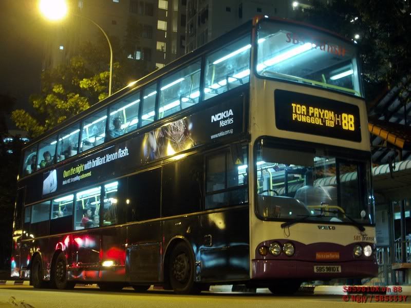Not bad with the Sv2, at least for someone who has never taken night shots before. Try not to take photos with people in front of the bus and the thing that most of us hate is the bus stop pole. Taking photos from the right side would be better since there are less obstacles (unless you got that bus stop divider). Also, I suggest you to get a tripod so that your picture will not get blurry. Best is wait for the bus to stop because any slightest movement will cause the picture to blur. And night shot is very hard to do, I've tried over 20 times but none are good yet.Anyway...