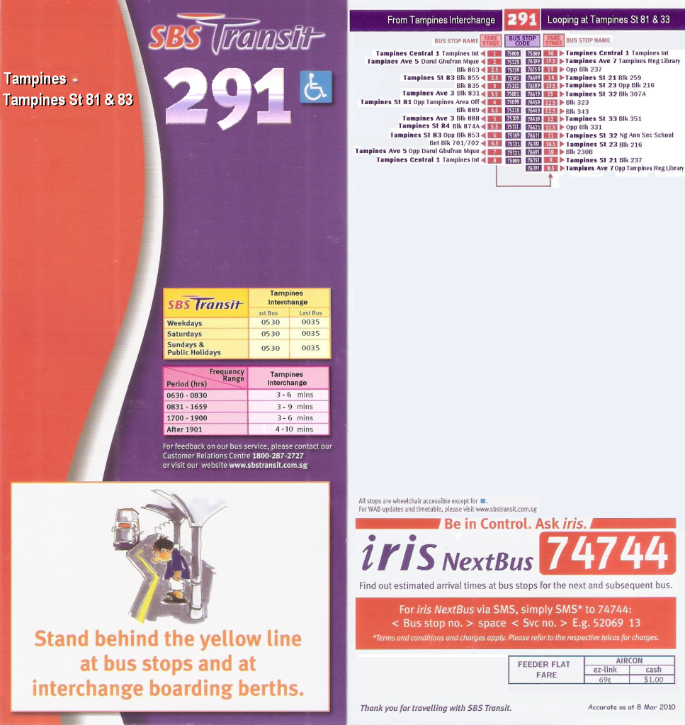 Townlink 291: Oh paiseh... details taken from my old 291 Service guide made in 2007.