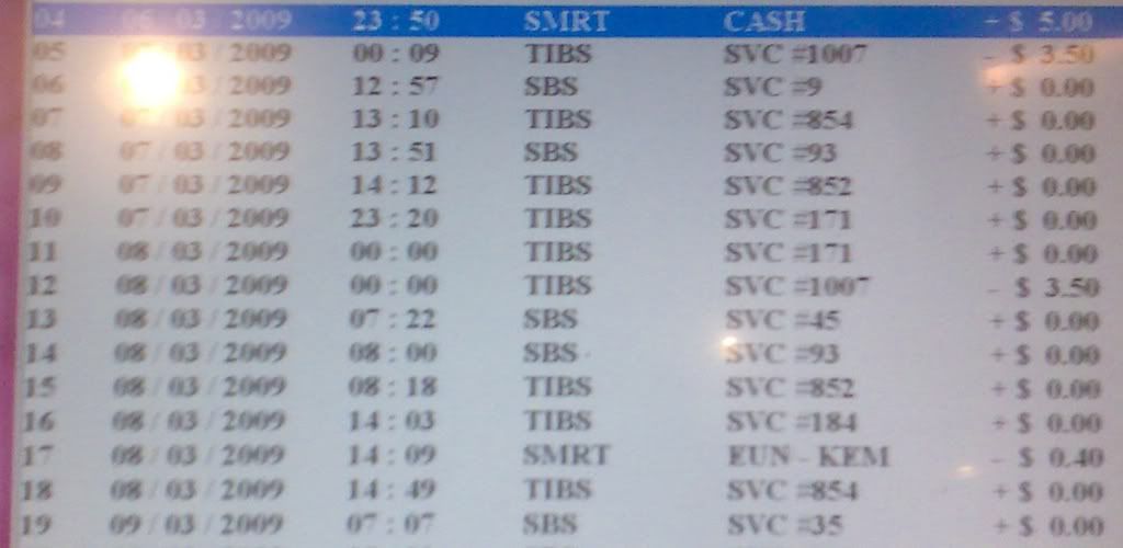 Notes:SBS9220Z: Sweltering hot... Seats are comfortable though. SBS3699R: Vibrating bus... As with most of the N113s... SBS986G: Though a townlink service, BC tried to chiong thru the small stretch of Ave 5. SBS8154M: Surprisingly not jerky... SBS1943Z: Single deck on 23 on weekends = Disaster(Cramjam...) SBS9554K: BC greeted every pax boarding and alighting... Nice touch! SBS7416P: Bus was damn hot at start. Came straight from Depot... SBS7303G: Last bus to depart St. Michael's. Had some prob with BC. Will not post here.
