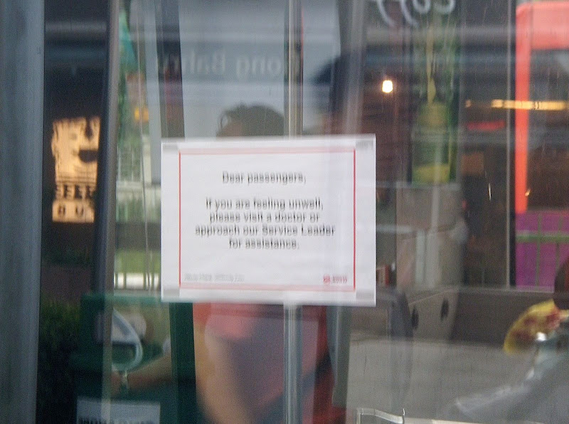 "Dear passengers, If you are unwell, please visit a doctor or approach our Service Leader for assistance."