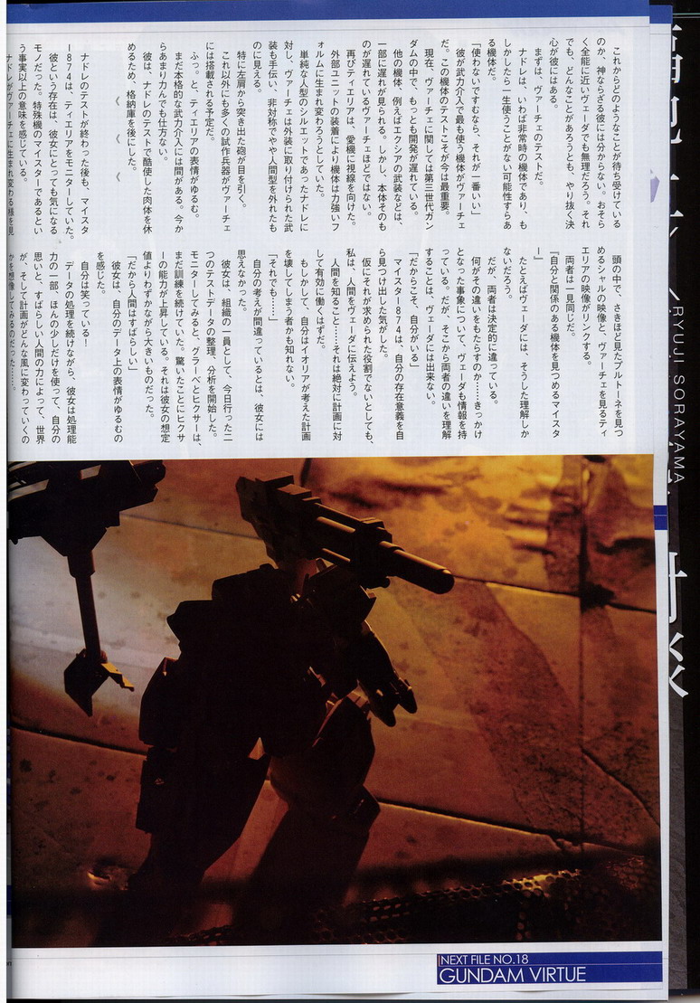 Rough Summary: Special equipment for the Cherudim. SAGA is an abbreviation for Special Assault GUNDAM Arms. Assumed to be used for base attack missions. Therefore, all guns are changed to short barrels, and it’s equipped with as many as seven guns (on its person). Ian Vashti, who was in charge of design kept in mind the “Seven Sword” of the Exia and actually referred to the Cherudim as the “Seven Gun” because of the number of guns it has in the development code. For close range combat, it is equipped with a crystal sensor in its head. Abandoning GN Shield Bits because they are unsuitable for battles in small areas, it instead carries a convenient GN Small Shield. On it’s back it has a GN Drive and added armor to make up for the lack of GN Shield Bits. The top section contains a GN Missile container.