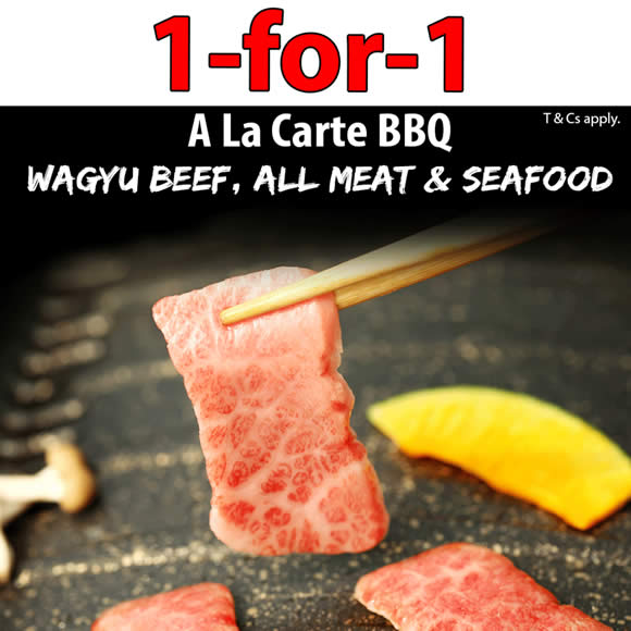 from their A La Carte menu ‘Wagyu’, ‘Beef’, ‘Other Meat’ and ‘Seafood’, get another item for free!