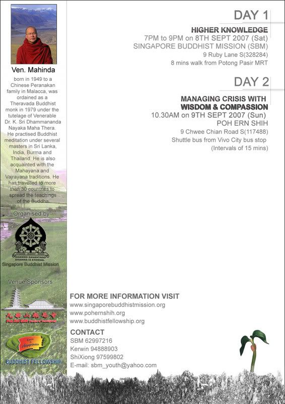 Anyway, are there any Buddhist youth groups' leaders here? Because we have also arranged a special session between Bhante and leaders of local youth groups to allow more close interaction between Bhhante and the youths and also hopefully inspire more Buddhist youth leaders. We have contacted all the Buddhist youth groups that we know in SIngapore but may have left one some.