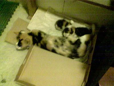 Morning all. Grainy pic I took last night with my cell of the cat and her 2 kittens