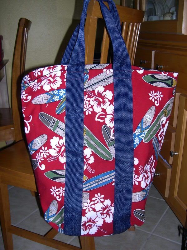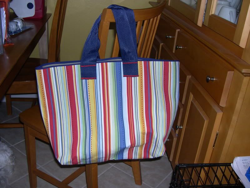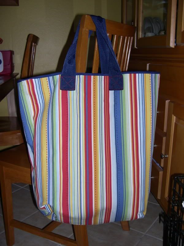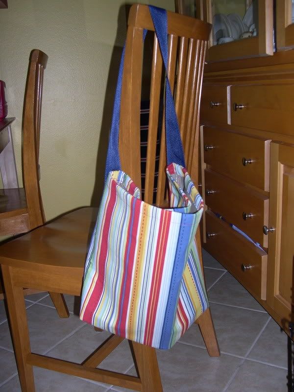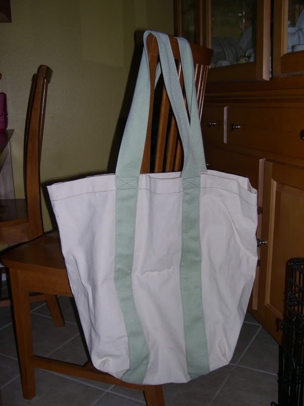 Hey, this one looks exactly like those store-bought travel bags... like when you're travelling and you run out of packing space and need to get an extra bag to pack your shopping home....that kind of bag.Originally posted by jetta:Here's the first one I made. I used regular canvas so that I could learn from my mistakes before using better fabrics. The handles/webbing are the most expensive. US$2.50 a yard.