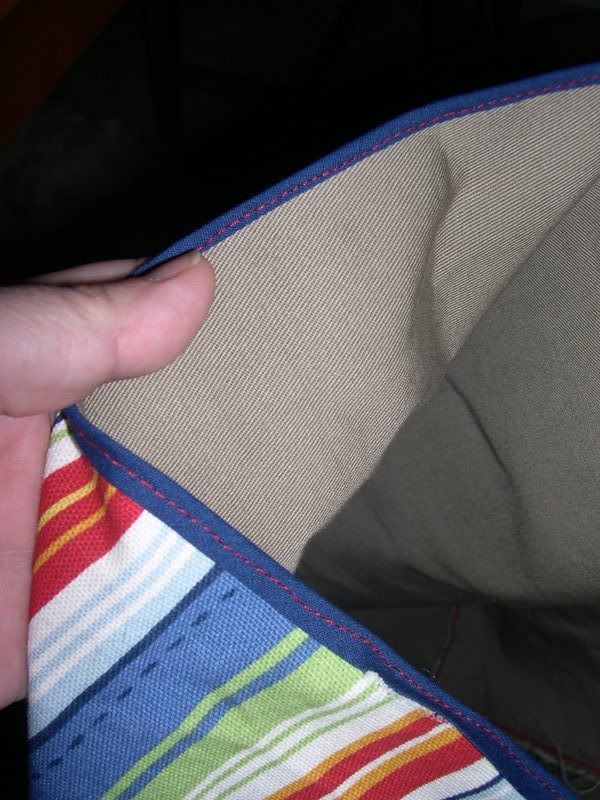 Thank you. That was the intention I had. The supermarkets and stores here have started selling canvas bags because San Francisco has banned plastic bags and other cities might follow soon. I refuse to buy canvas bags sold at the stores because they want US$5 for a simple and small bag. Even though it costs slightly more for me to do it myself, I don't care. At least I can customise the design and fabric. Besides, I have a boatload of remnants in my garage.Originally posted by Wanda:Hey, this one looks exactly like those store-bought travel bags... like when you're travelling and you run out of packing space and need to get an extra bag to pack your shopping home....that kind of bag.