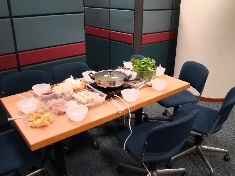 the other section in the office is hardcore.. we're stuck here on standby until stood down for the day (mini-stars haggling over money) so they're having steamboat..