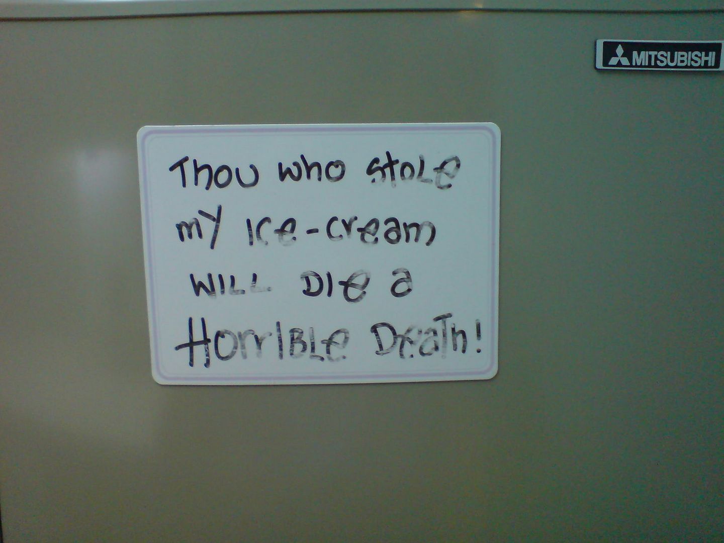 Originally posted by udontknowme:i once wrote some (by that, i meant i wrote on the ENTIRE box) stuff on a box of candy I kept in the fridge.