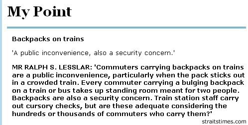 Oh, and that 'backpacks on MRT' letter.... it was so fantastic that I print-screened it.