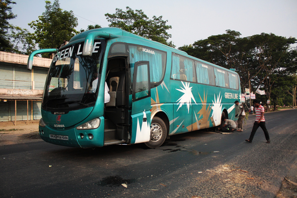 What's the use of a first world bus with third world driving and manteinance? On my way back from Chittagong to Dhaka, this nice bus that I shelled out 3 x more in price was doing its usual overtaking stunts when the brake on the left rear refused to let go all of a sudden. And so as you can see....we were now stranded awkwardly, in the middle of the road while everyone gawked.