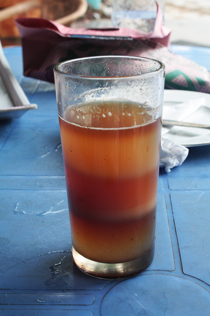 7-coloured tea that I had. Once was enough though. Because what's nice to look at, is not necessarily nice to taste. And it wasn't cheap. 10 Taka per colour. I think I'll stick to my 1-colour 5 Taka tea, thank you very much.