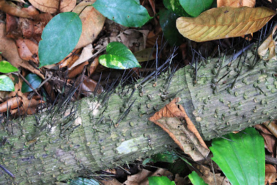 The pictures of some of the fearsome spikes do little justice to what we really faced. Much of the vegetation had spikes of all varieties you could fathom. Those with pictures taken, were those that looked the most impressive. Some of the others had barely visible spikes but covered the entirety of the plant, with one only figuring this painful reality out when he reaches for the branch innocently.....ouch! Others had hooks and claws to ensnare the unaware, who would then have to painstakingly release himself from the plant.....only to be entangled again when the breeze blew another piece of garment close to the plant, or simply because he had to walk past the plant (or crawl / jump / bend over).
