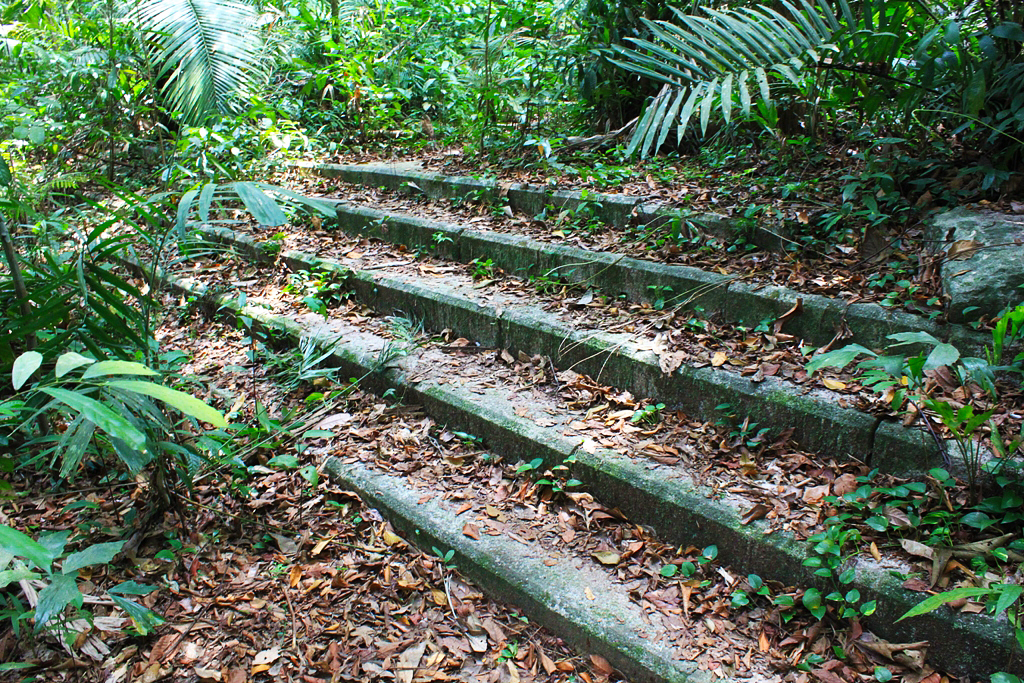 Hidden beyond the vegetation, laid a very long flight of steps. We had been trekking through what was essentially undulating terrain, and to see concrete steps upon steps amongst the greenery quite took our breath away. More flights of steps were revealed and we climbed for quite a long bit. In fact, somewhat more than I had expected.