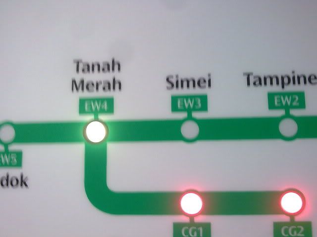 Note: Tanah Merah, Expo and Changi Airport are lighted in yellow (red+green)