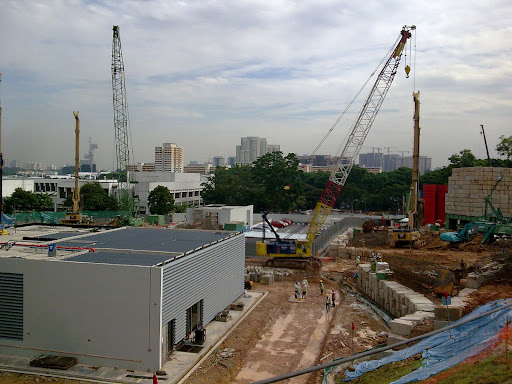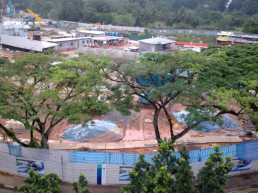 NUH medical centre will be built on top of the station. road reinstatement in progress. station exits/ ventilation shafts are more or less completed