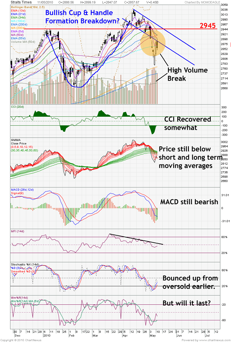 From the look of the Candlestick Bar charts above, seems quite certain that the recent bear trend has broken the Fibonacci Retracement levels (even 61.8%)'. Almost all moving averages have turned down... the indicators are currently doing an adjustment... Have you have your safety belt on ?