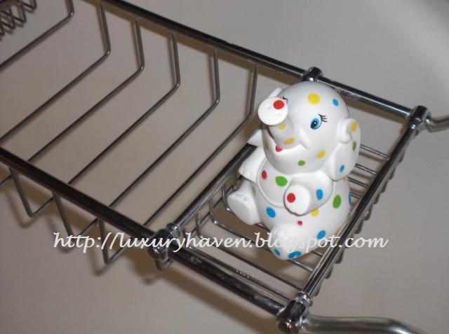 In the bathroom, a rubber pokka-dot elephant was sitting in the bathtub, waiting for me to pick her up.