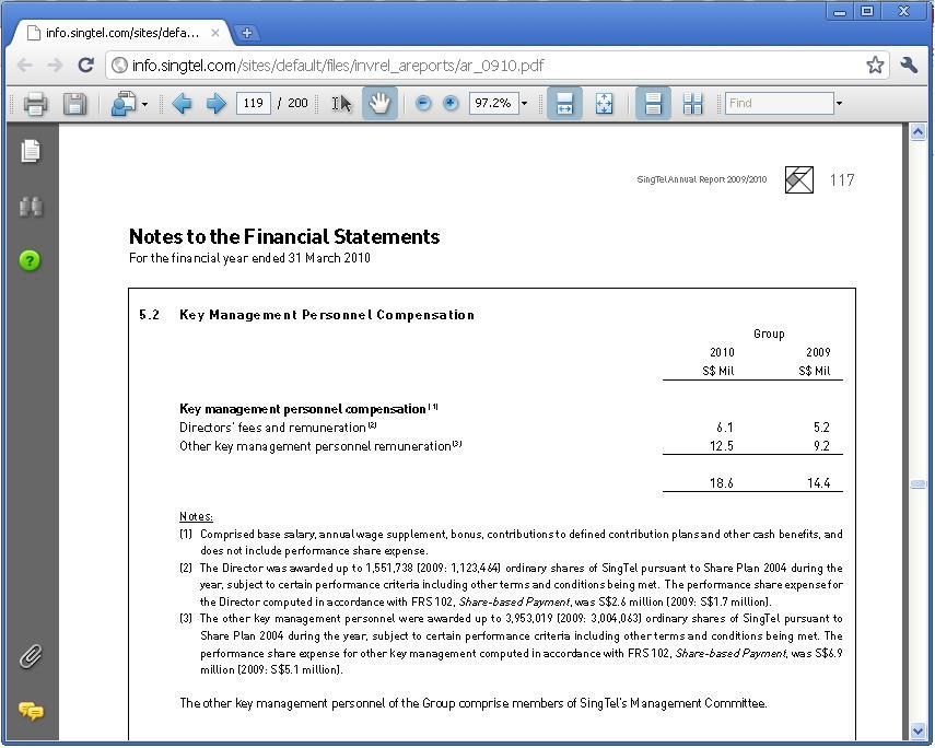 Singtel's Board and Key Mgmt earned FY-end2010 [pict]= $18.6m salary + $2.6m worth director's shares + $6.9m mgmt shares = $28.1m.