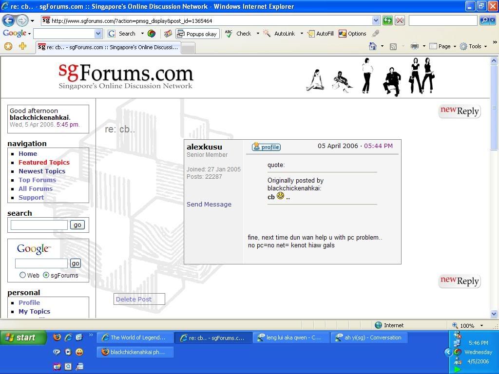 yuan wang!!Originally posted by alexkusu:me blackmail u? so it means its true u hiaw gals online la...