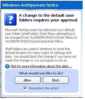 After deleting the 4 critical objects, Microsoft Anti-spyware warning pop up? Or you did a scan with Microsoft Anti-spyware?Originally posted by mhcampboy:I know that is Microsoft Anti Spyware.