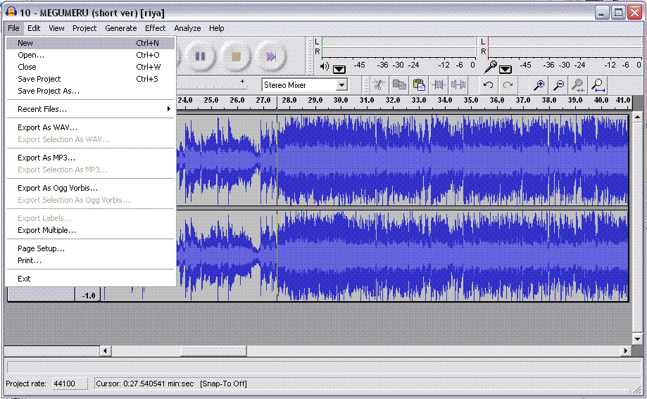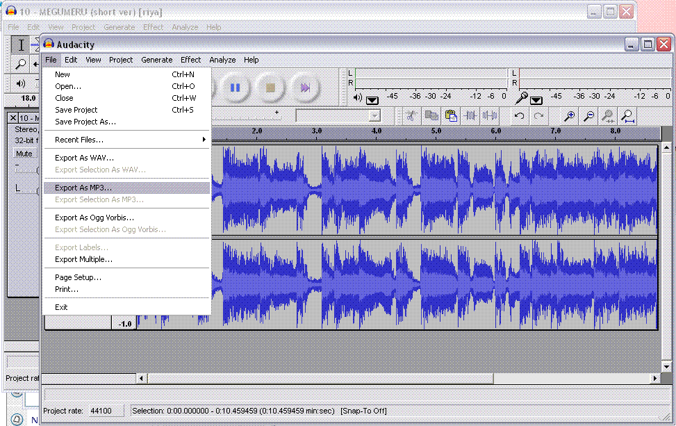 Instructions for ripping the chorus of the song using audacity.
