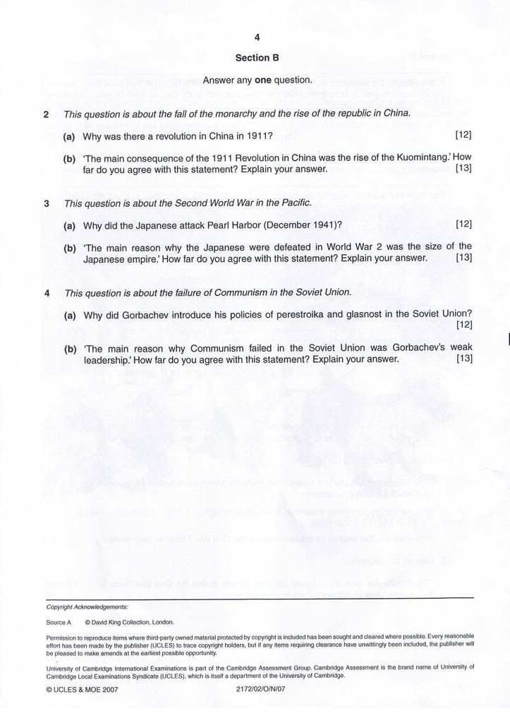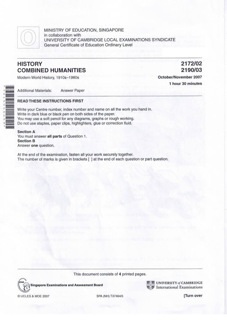 haha... i was overjoyed when i saw the questions! The paper was absolutely very extremely easy! For SEQ, I did the one on China, actually I felt confident for all 3 as i picked them as chapters to study. The SEQ questions were easy to understand and answer. SBQ on the other hand, i felt was tougher than SEQ but still manageable, maybe i'll score 20-23/25 for SEQ, but for SBQ only 16-20/25.