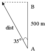 Hence, distance from A = 500 / cos 35°