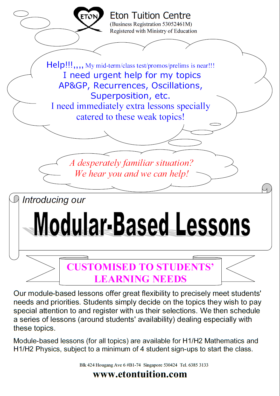 Your modular-based lessons are an excellent idea! For students who want to focus tuition on specifically those topics.