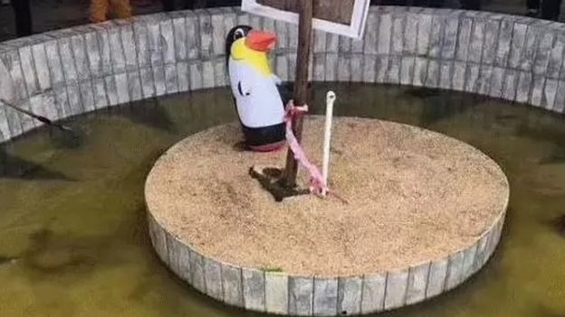 China zoo can't afford real penguins, so used toy penguins instead.
