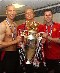 Front row: Robbie Savage, David Beckham, George Switzer, Keith Gillespie, Paul Scholes, Chris Casper
