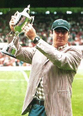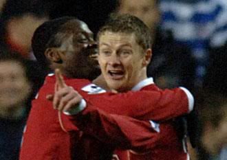 Henrik Larsson - Celebrating his first goal for Man Utd on his debut match against Aston Villa in the FA cup.